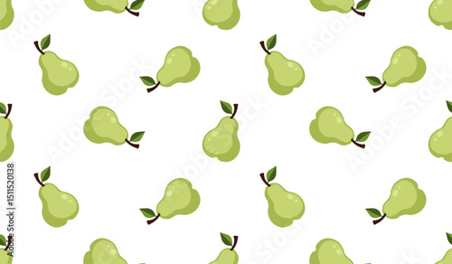 © applesweetpattern, Obraz premium Pear seamless pattern. Fruit background. Beautiful vector print.