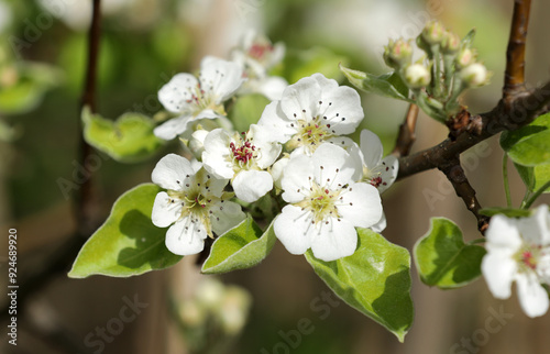 Obraz premium Pear tree with white flowers in spring