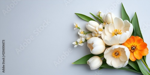 © Oleksandr, Fototapeta premium Pearl Blossom Whisper. Combining ivory peonies, creamy tulips, and pale golden jasmine for a soft, sophisticated floral arrangement.
