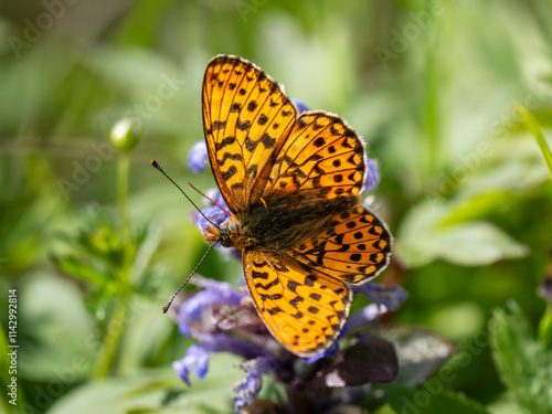 Fototapeta premium Pearl-boardered Fritillary Butterfly on Bugle