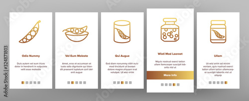 © vectorwin, Fototapeta premium Peas Bob Vegetable Onboarding Icons Set Vector. Peas In Glass Jar And Metallic Container, Natural Agricultural Vitamin Food Illustrations