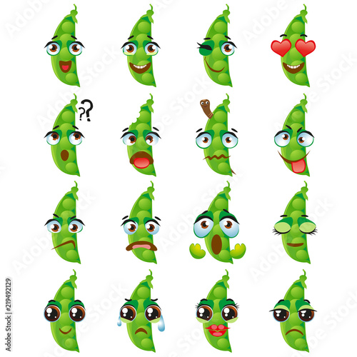 Obraz premium Peas Emoji Emoticon Expression. Funny cute food