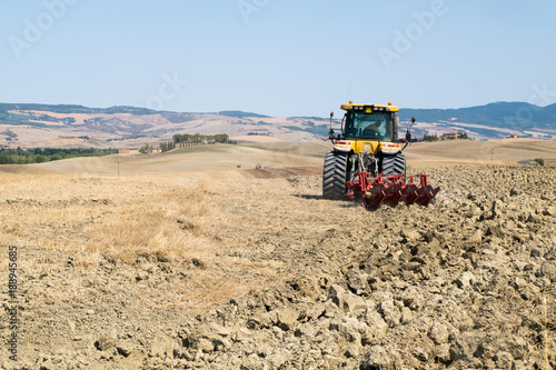 © armandele, Obraz premium Peasant on the tractor while preparing the field for sowing