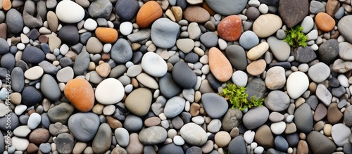 © HN Works, Naklejka premium pebbles in garden ground isolated pastel background Copy space