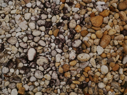 © amonphan, Naklejka premium pebbles on the beach,texture of sand,stone concrete wall background