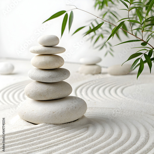 © Husnat, Obraz premium pebbles stacked in balance white zen concept