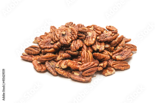 © Nikolay, Fototapeta premium Pecan-nut isolated on white background. Top view.