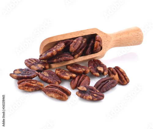 © saneh, Obraz premium Pecan nuts isolated on white background