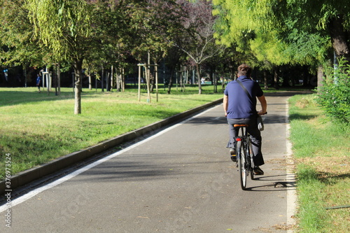 © Alfons Photographer, Obraz premium Pedalare in bicicletta nel parco della città