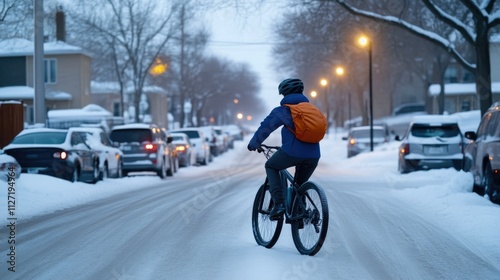 © Andrii , Obraz premium Pedaling Through Winter Streets at Twilight