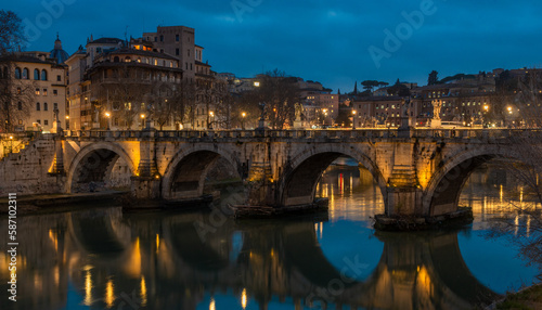 Naklejka premium Pedestrian bridge built in 134 that crosses the Tiber, with travertine...