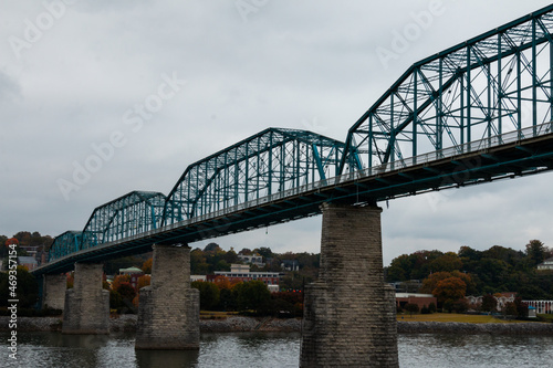 © Melanie, Naklejka premium Pedestrian Bridge City Scape Views in Autumn Chattanooga Tennessee
