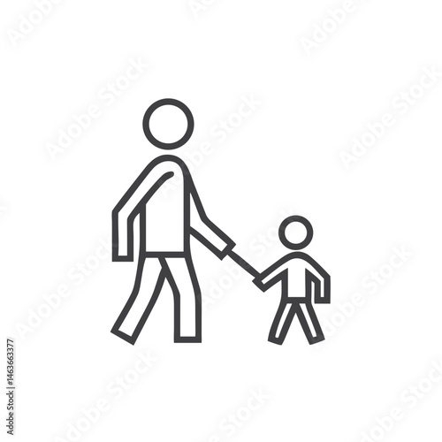 © Larisa, Fototapeta premium Pedestrian Safety Icon with Parent and Child Crossing Road for Traffic Education Materials, School Safety Programs, and Public Awareness Campaigns