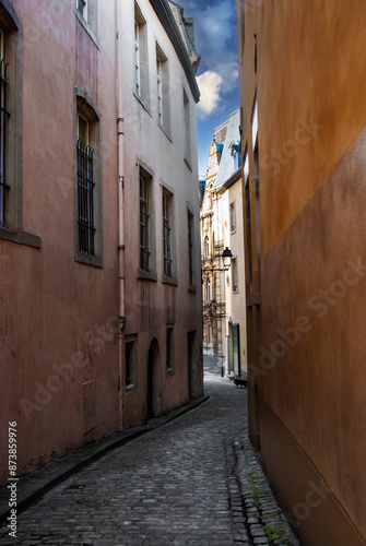 Fototapeta premium Pedestrian walkway in old part downtown Luxembourg city summer time