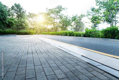 © xy, Fototapeta premium Pedestrian walkway next to the highway