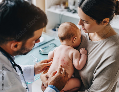 © Monika, Obraz premium Pediatra badający niemowlę z wysypką