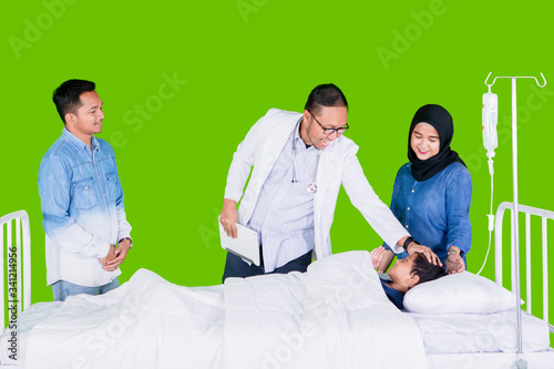 Fototapeta premium Pediatrician checking boy in studio with parents