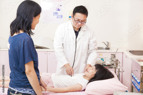 © Tom Wang, Obraz premium pediatrician examining little girl on the bed