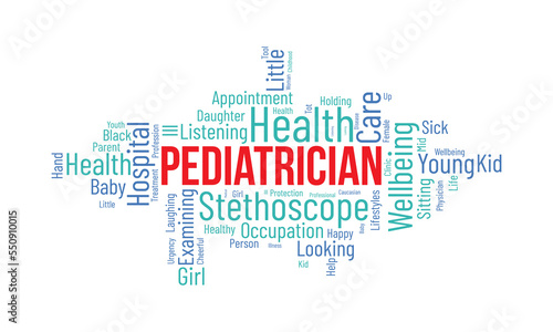© Rana, Obraz premium Pediatrician word cloud background. Health awareness Vector illustration design concept.