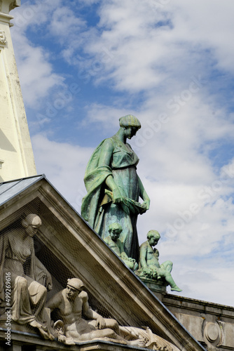 Fototapeta premium pediment and statue in the roof of the Banco de Portugal building on the...