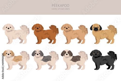 Obraz premium Peekapoo clipart. Pekingese Poodle mix. Different coat colors set.