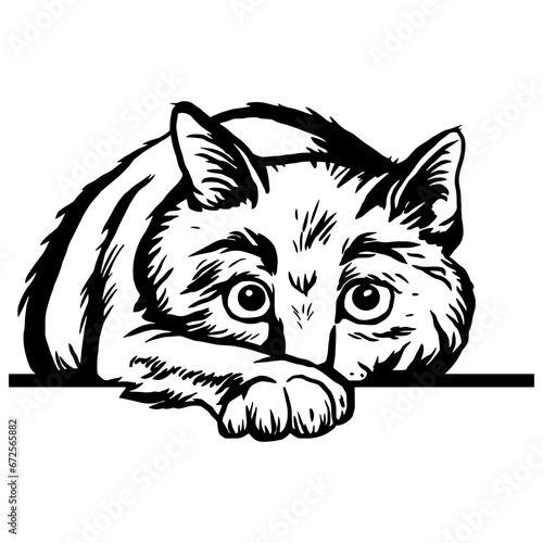 Obraz premium Peeking Cat - Funny Cat peeking out - face head isolated on white