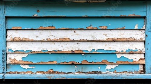 Fototapeta premium Peeling paint on old window shutter, close up view