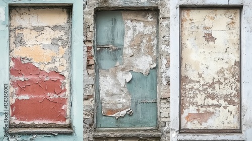 © jambulart, Naklejka premium Peeling paint shows old weathered window frames.