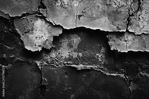 Obraz premium Peeling textured black paint on rough wall surface
