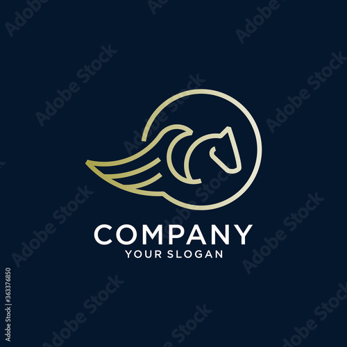 © Royin, Obraz premium pegasus line gold logo vector