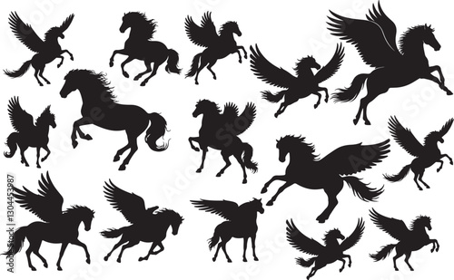 © Rizwan Ahmad, Obraz premium Pegasus Silhouette on White Background