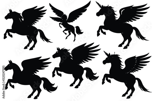 © shopone, Obraz premium Pegasus Silhouette Side View