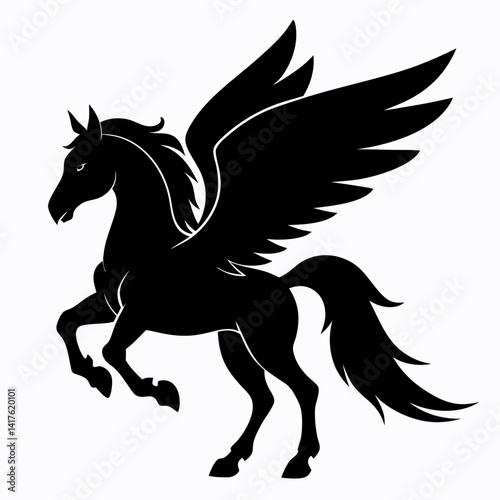 © JESMIN, Fototapeta premium Pegasus vector silhouette black design white background