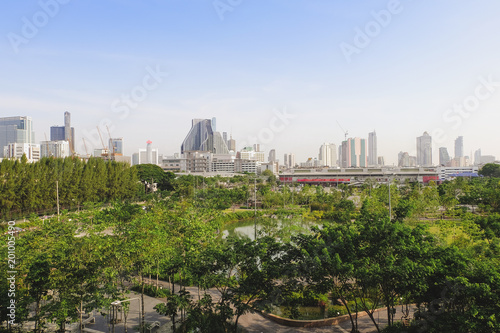 Fototapeta premium Pejzaż miejski i naturalny widok na bangkok, Tajlandia, z wysokiego położenia...