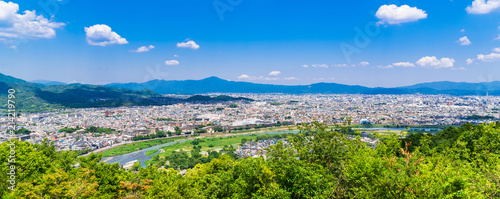 Obraz premium Pejzaż miejski Kioto i Higashiyama widziane z Arashiyamy