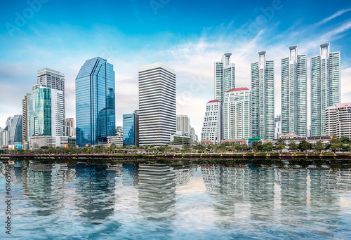 Fototapeta premium Pejzaż miejski na niebieskim niebie