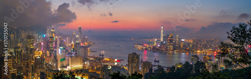 Fototapeta premium Pejzaż miejski z Braemar Hill w nocy, Hongkong