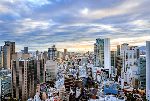 © mtaira, Fototapeta premium Pejzaż Osaka o zachodzie słońca