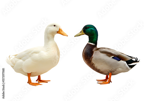© White, Obraz premium Pekin and Mallard Ducks A Comparative View isolated on transparent background