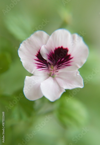 Fototapeta premium Pelargonium crispum in bloom, Geranium Angel's Perfume with purple - white flowers