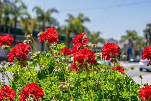 © youli zhao, Fototapeta premium Pelargonium × hybridum / elargonium × hortorum, commonly called zonal geranium, garden geranium, is a nothospecies of Pelargonium most commonly used as an ornamental plant. Monterey Park, Los Angeles