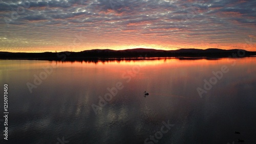 © lhoste, Naklejka premium Pelican at Dusk Over Reflective Lake
