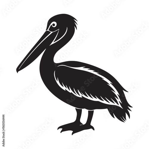 Obraz premium Pelican Bird silhouette, black and white silhouette, vector and illustration