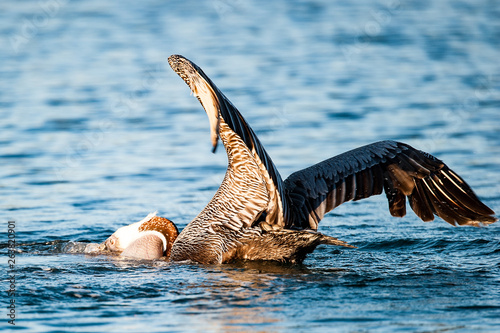 © geno sajko, Fototapeta premium Pelican diving for fish and got one.