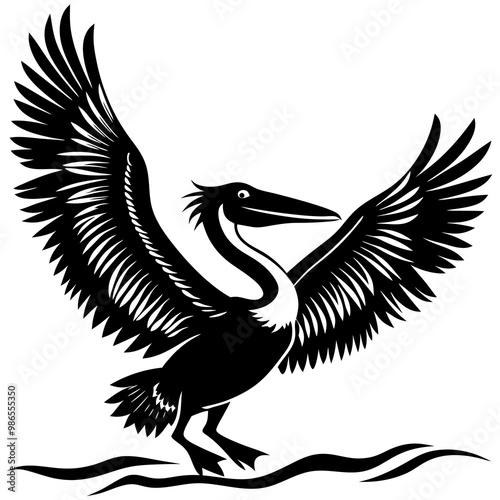 © design master, Fototapeta premium Pelican Silhouette Wings Spread for a Water Landing