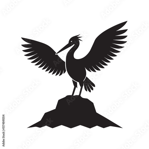 © Maptahul, Fototapeta premium Pelican With Wings Spread On Rocky Cliff