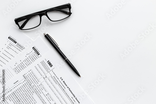 © 9dreamstudio, Fototapeta premium Pen on US individual tax form. Tax payment season