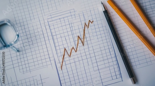 © somchaichoosiri, Naklejka premium Pencil and pen placed on a blank sheet of paper for writing and drawing purposes
