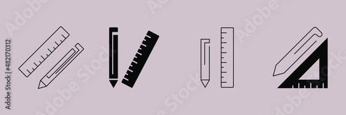 Fototapeta premium Pencil and ruler icons symbol vector elements for infographic web