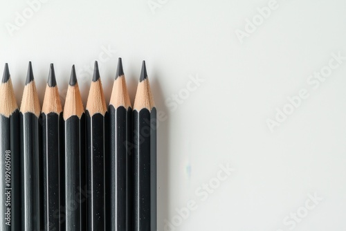 Naklejka premium Pencil collection display creative workspace art supplies minimalist top view...